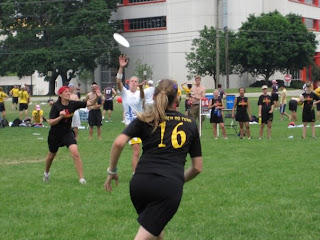 When I joined Woman Scorned, I was pretty terrible all around. The mixture of starting a new sport, not having done anything athletic for 1.5 years, and coming in at an intense part of the season was just not pretty… I may or may not have vomited in the president of Iowa State’s driveway after that first practice. I remember playing 8’s or so at Southerns, my first tourney and feeling so awful because I knew that I was “worth about 5 points” every game…for the other team. Even come sectionals and regionals I did not play very much, but I know that those were the games where I contributed the most to the team- from the sideline.