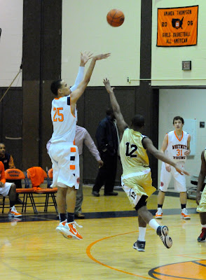 Another tough one to shoot. The lighting was a liiiiiiiiiiiiiiiiittle better because there were about 5 different TV cameras there with their own lighting, so that lightened the gym up a little bit, but not much. Also, it was the Comcast Game of the Week or something of that nature, so there were tons of cameras and tons of people. It was hard to get a good shot without blurry fan appendages in it somewhere.